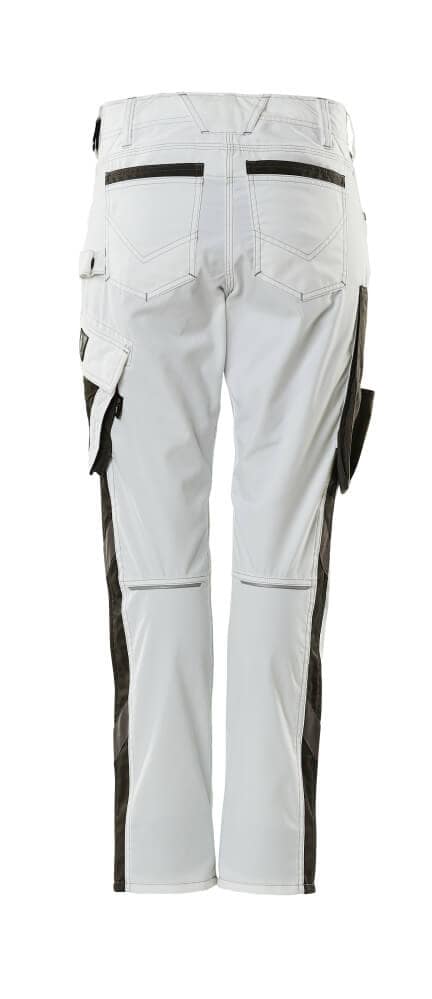 Tvåfärgad. Lady passform DIAMOND. Lätt kvalitet. Trenålsstickningar på benen och i grenen. Låg midja och formskuren linning. Byxbenen är ergonomiskt formade. Bältesstroppar. D-ring. Stängning med blixtlås. Verktygsstropp i linningen. Rymlig framfickor med CORDURA®-förstärkningar – en med en lättillgänglig telefonficka. Bakfickor med förstärkningar. Hammarstroppen är justerbar. Benficka med telefonficka och lock med dolda tryckknappar. Tumstocksfickan är CORDURA®-förstärkt. Pennficka. Ett extra lager av tyg är placerat som förstärkning på baksidan av produkten där bakfickan, lårfickan och tumstocksfickan är påsatta. Reflexeffekter.